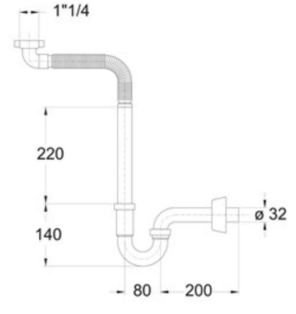Półsyfon umywalkowy rurowy z zastosowaniem harmonijkowej rurki spustowej 1 1/4" TUBULAR C