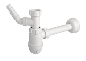 Syfon umywalkowy butelkowy 'niski' bez spustu z podłączeniem do pralki lub zmywarki.