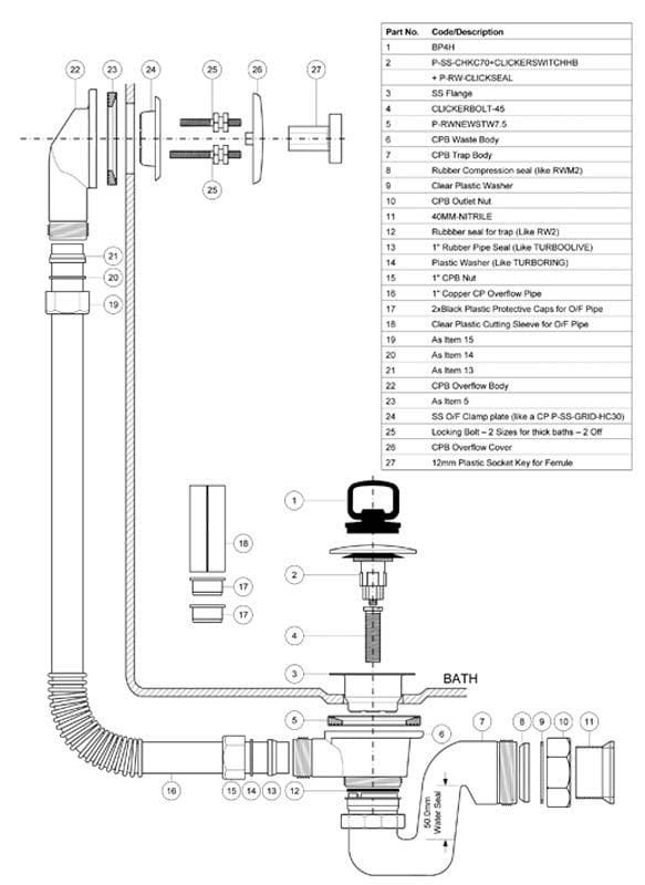 Syfon wannowy zewnętrzny dekoracyjny chrom McAlpine BRASSTRAP-50-CB