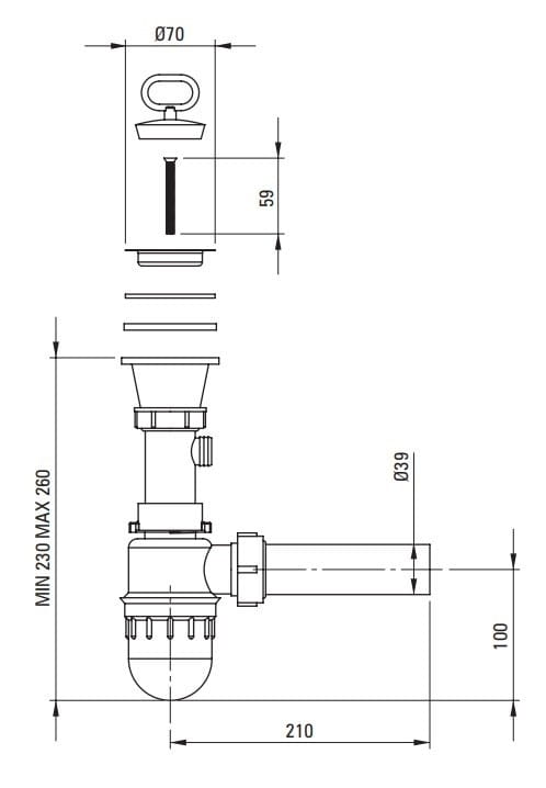 Syfon przeznaczony jest do komory gospodarczej ZYK_0100. Syfon został wyposażony w praktyczny korek manualny, zapewnia wygodne użytkowanie. Można go łatwo podłączyć zarówno do pralki, jak i zmywarki. W komplecie znajdują się uchwyty mocujące i śruby, dzięki czemu instalacja jest szybka i prosta.