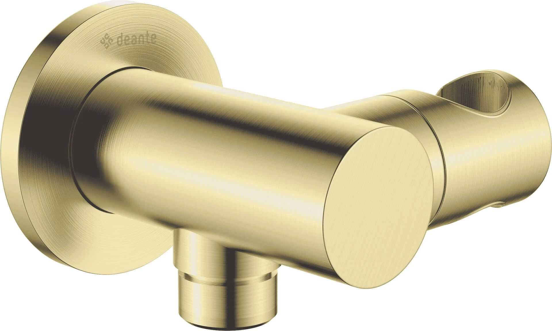 Przyłącze kątowe okrągłe z uchwytem na słuchawkę w kolorze szczotkowanego złota Cascada firmy Deante
