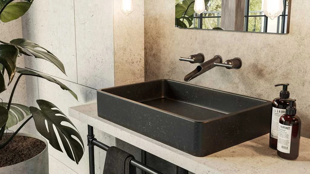 Umywalka kamienna łączy oryginalną teksturę, wytrzymałość i elegancki minimalistyczny design.