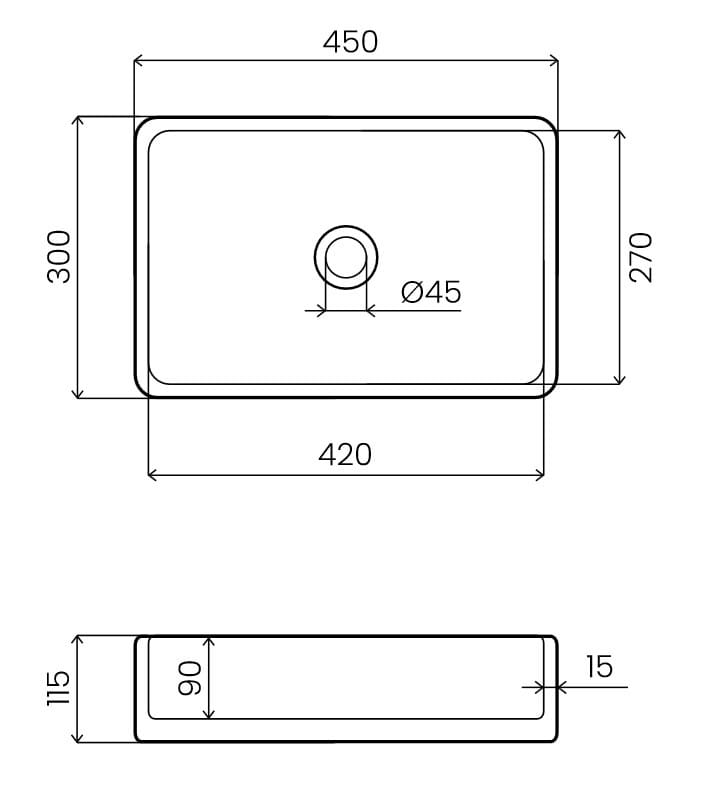 - prostokątna minimalistyczna forma z zaokrąglonymi brzegami,