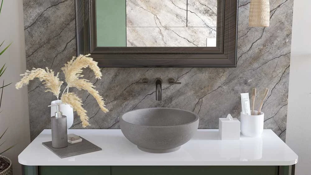 Umywalka kamienna łączy oryginalną teksturę, wytrzymałość i elegancki minimalistyczny design.