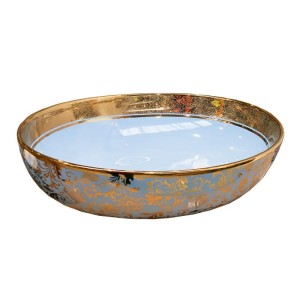 Umywalka nablatowa CEREZA posiada owalną sylwetką i cienki rant. Szczególną uwagę przykuwa finezyjne wykończenie produktu- połączenie złotej i niebieskiej barwy oraz kwiatowy, delikatny wzór. Umywalka CEREZA upiększy każdą łazienkę zaprojektowaną w eleganckim, rustykalnym czy eklektycznym stylu, stając się jej nietuzinkową ozdobą. Jeśli zależy Ci na oryginalnym i szykownym efekcie wizualnym, ten produkt spełni Twoje oczekiwania.
