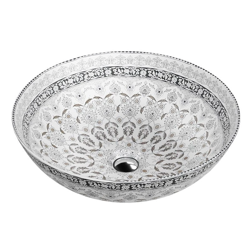 Umywalka nablatowa ROSA KOLOR posiada okrągły kształt i cienki rant. Ten model wyróżnia się energicznymi, imitującymi folklork wzorami, które tonują barwy umywalki- biel, czerń oraz szarość. Jeśli poszukujesz wykwintnego i zgodnego ze światowymi trendami dodatku do swojej wymarzonej łazienki, postaw na umywalkę ROSA KOLOR. Ten model jest odpowiedni do różnej wielkości łazienek i pozwoli stworzyć niepowtarzalną aranżację wnętrza w stylu eklektycznym, rustykalnym, nowoczesnym lub glamour.
