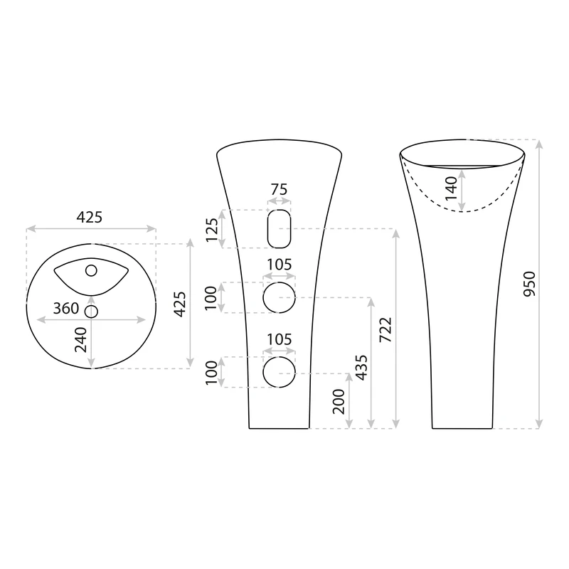 - Wymiary w mm (dł x szer x wys) 425x425x950