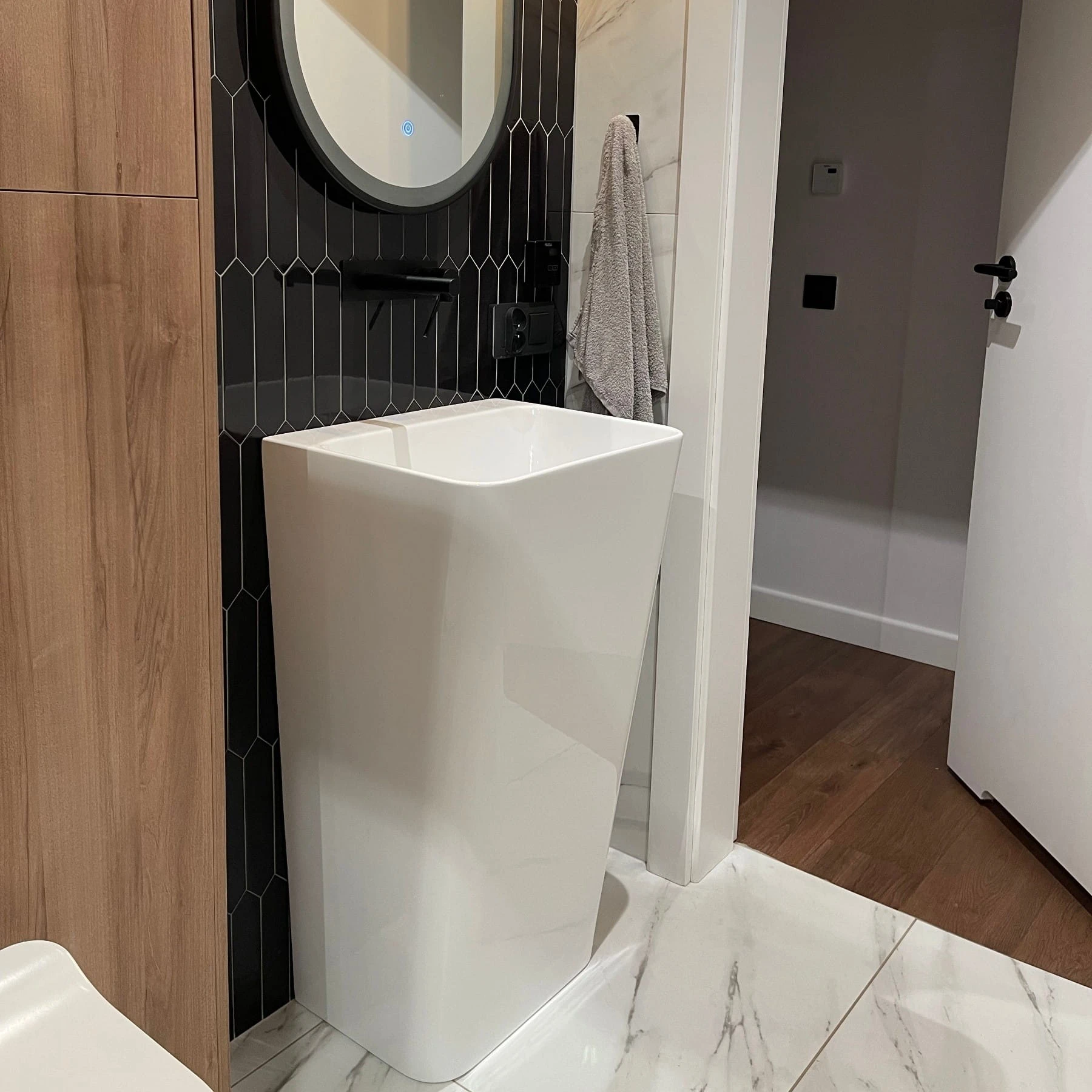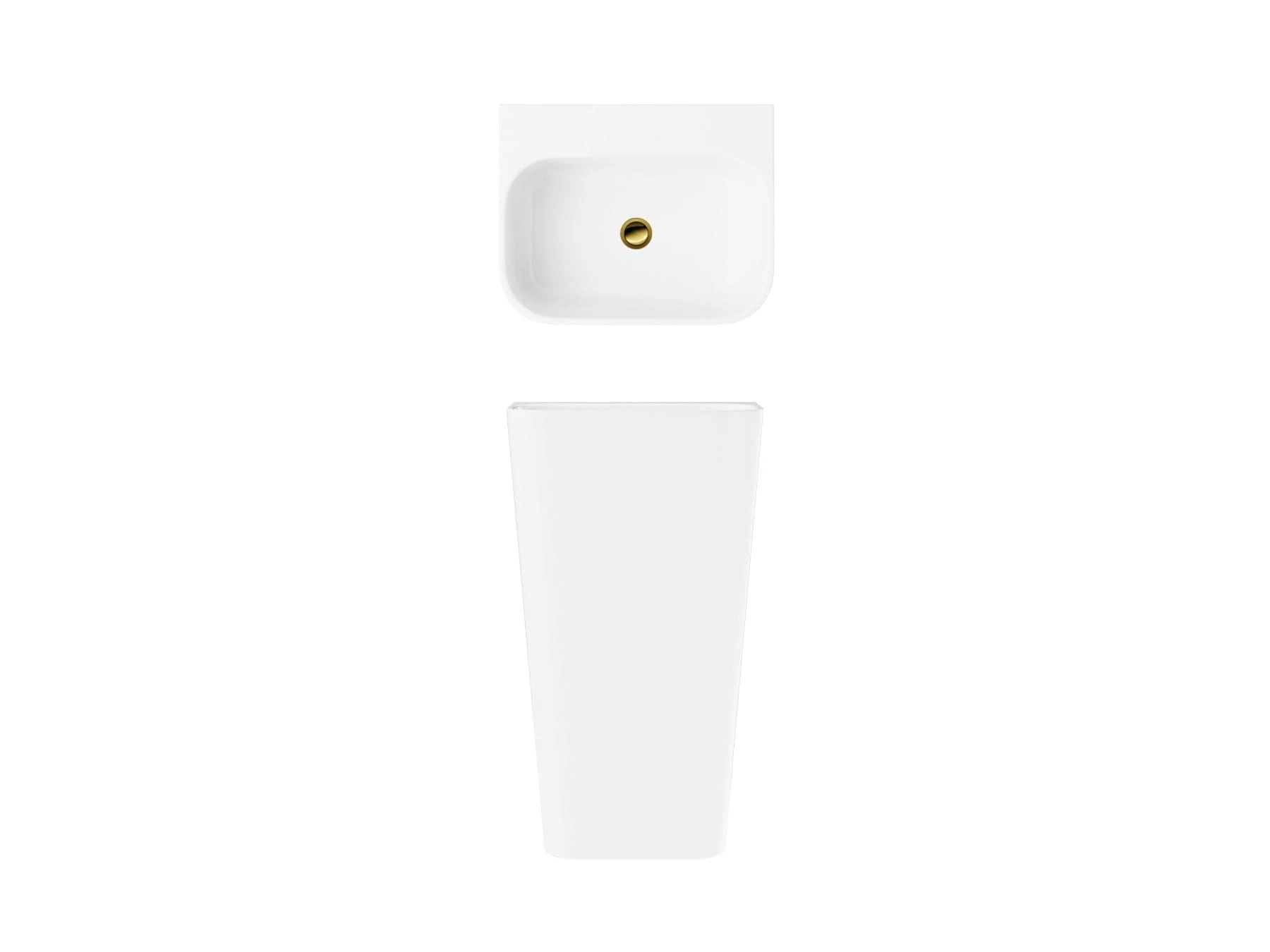 Stojąca umywalka akrylowa Corsan Olia MU5040 biała z syfonem i korkiem złotym