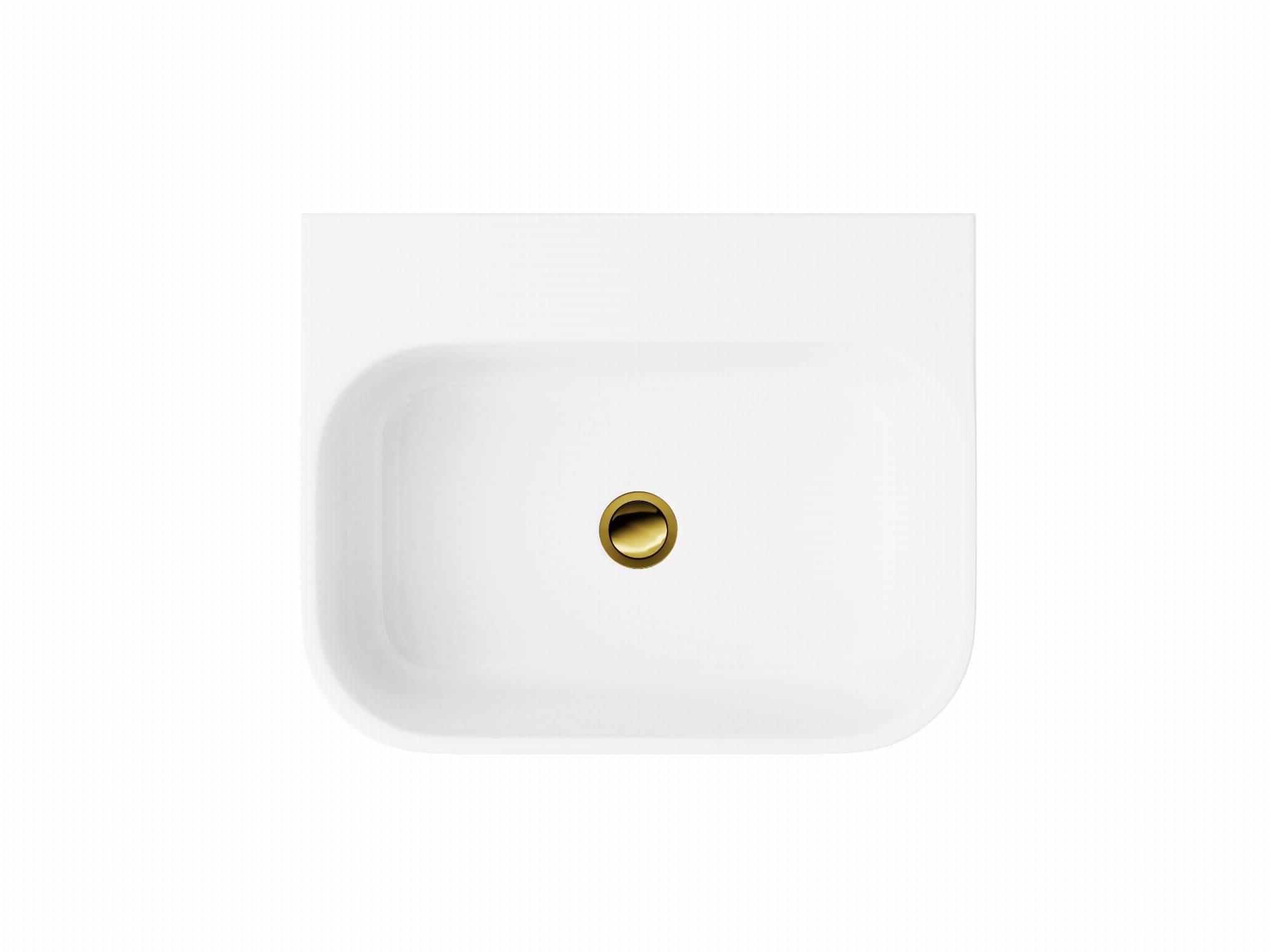 Stojąca umywalka akrylowa Corsan Olia MU5040 biała z syfonem i korkiem złotym.