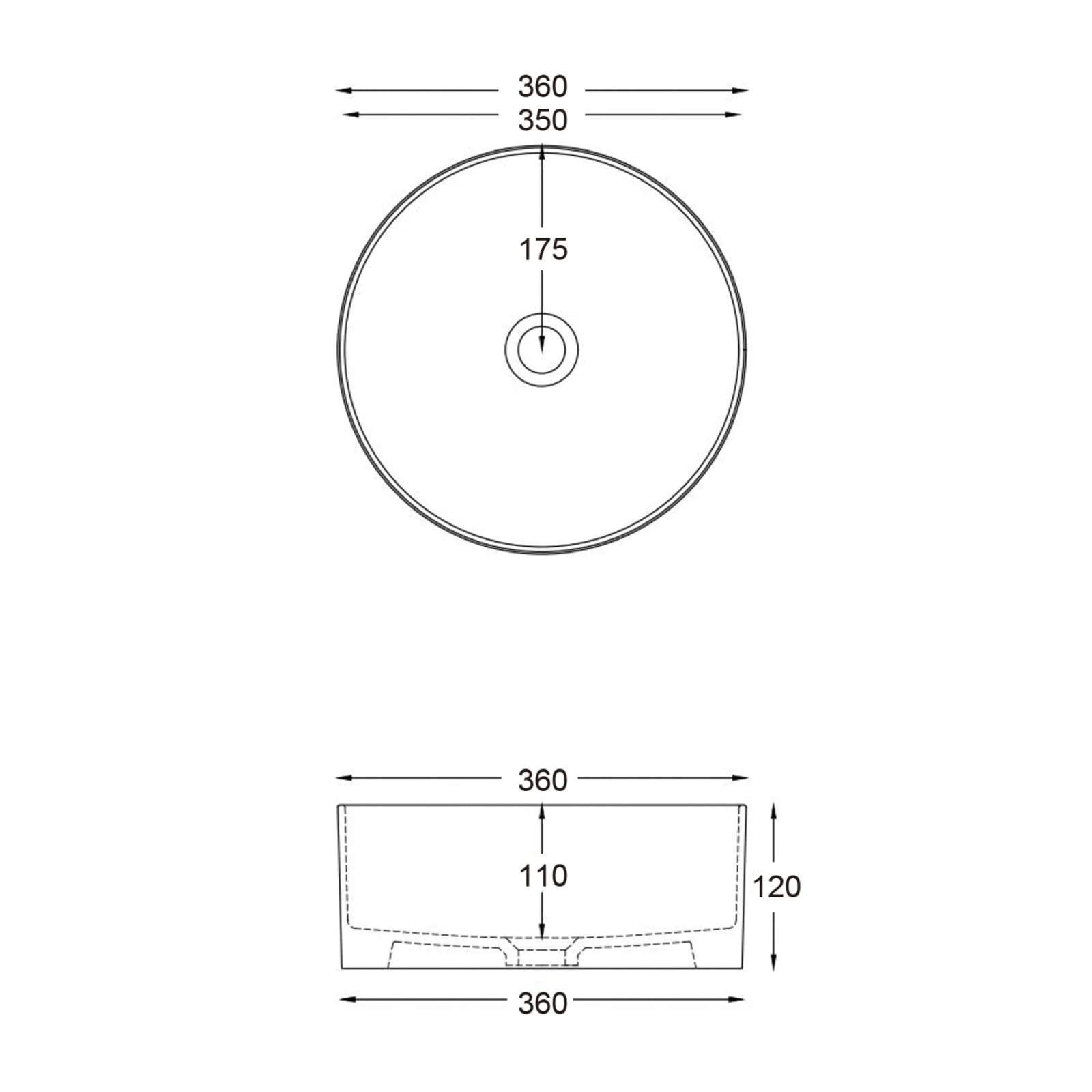 Umywalka nablatowa lugo okrągła 360x120 mm z korkiem chrom