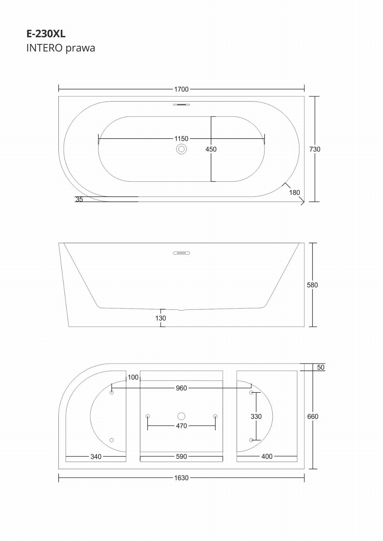 - Długość wanny 170 cm