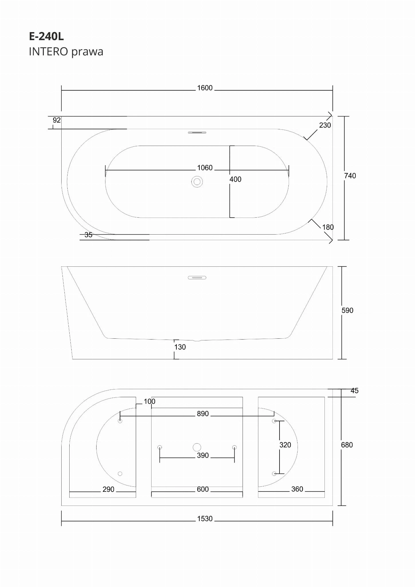 - Montaż wanny Prawostronny