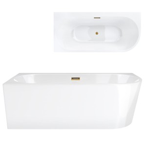 Wanna wolnostojąca narożna corsan intero 160 x 74 z szeroką krawędzią montaż lewostronny korek klik-klak szczotkowane złoto