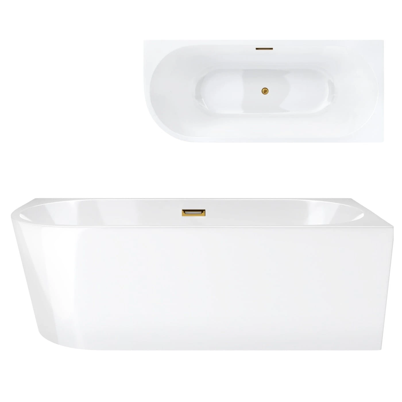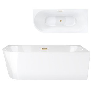 Wanna wolnostojąca narożna corsan intero 150 cm montaż prawostronny korek klik-klak szczotkowane złoto