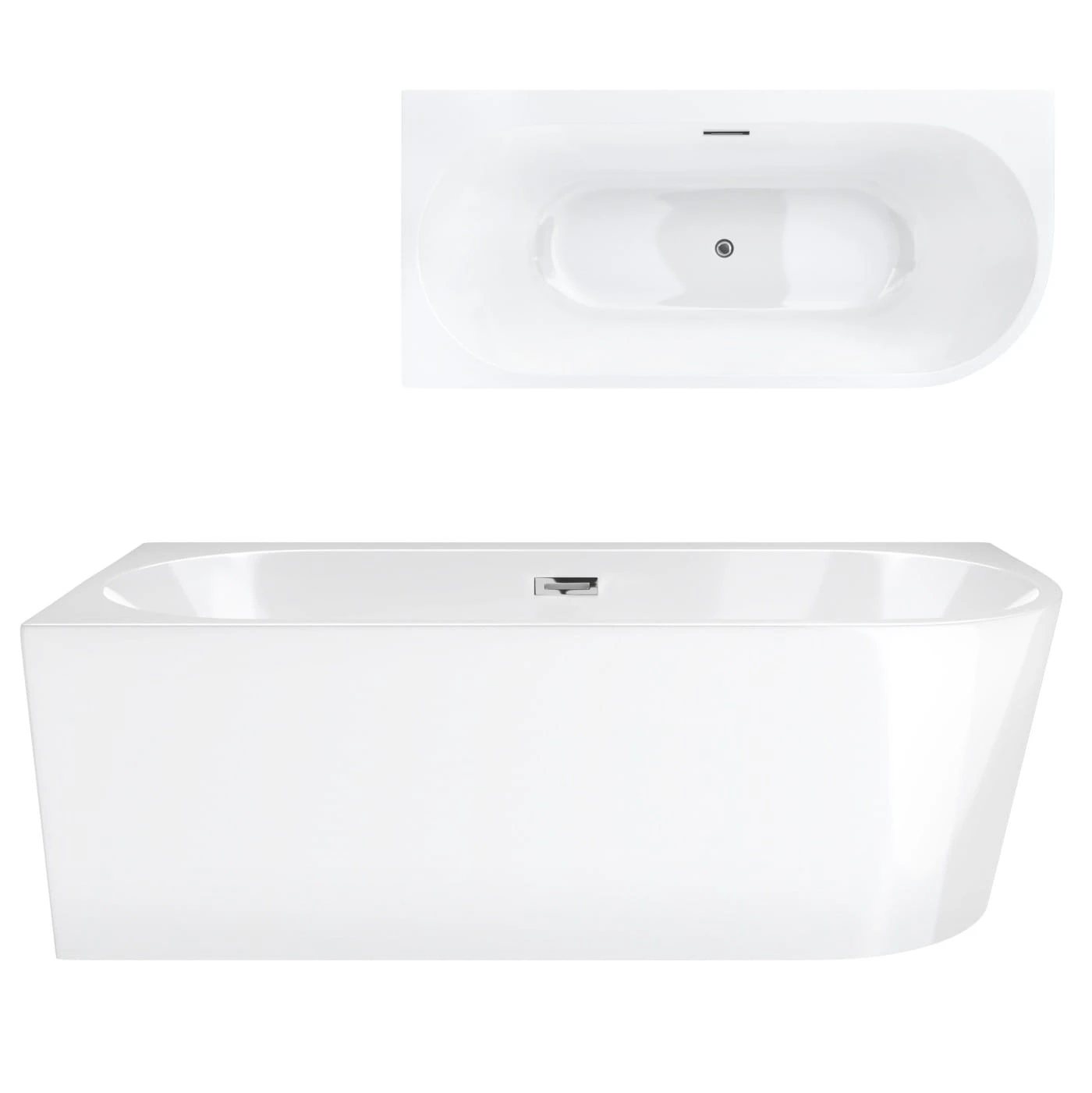 Wanna wolnostojąca narożna corsan intero 150 x 74 z szeroką krawędzią montaż lewostronny korek klik-klak chrom