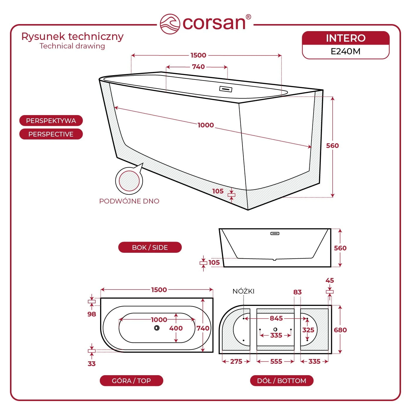 - Dno wanny Wzmacniane