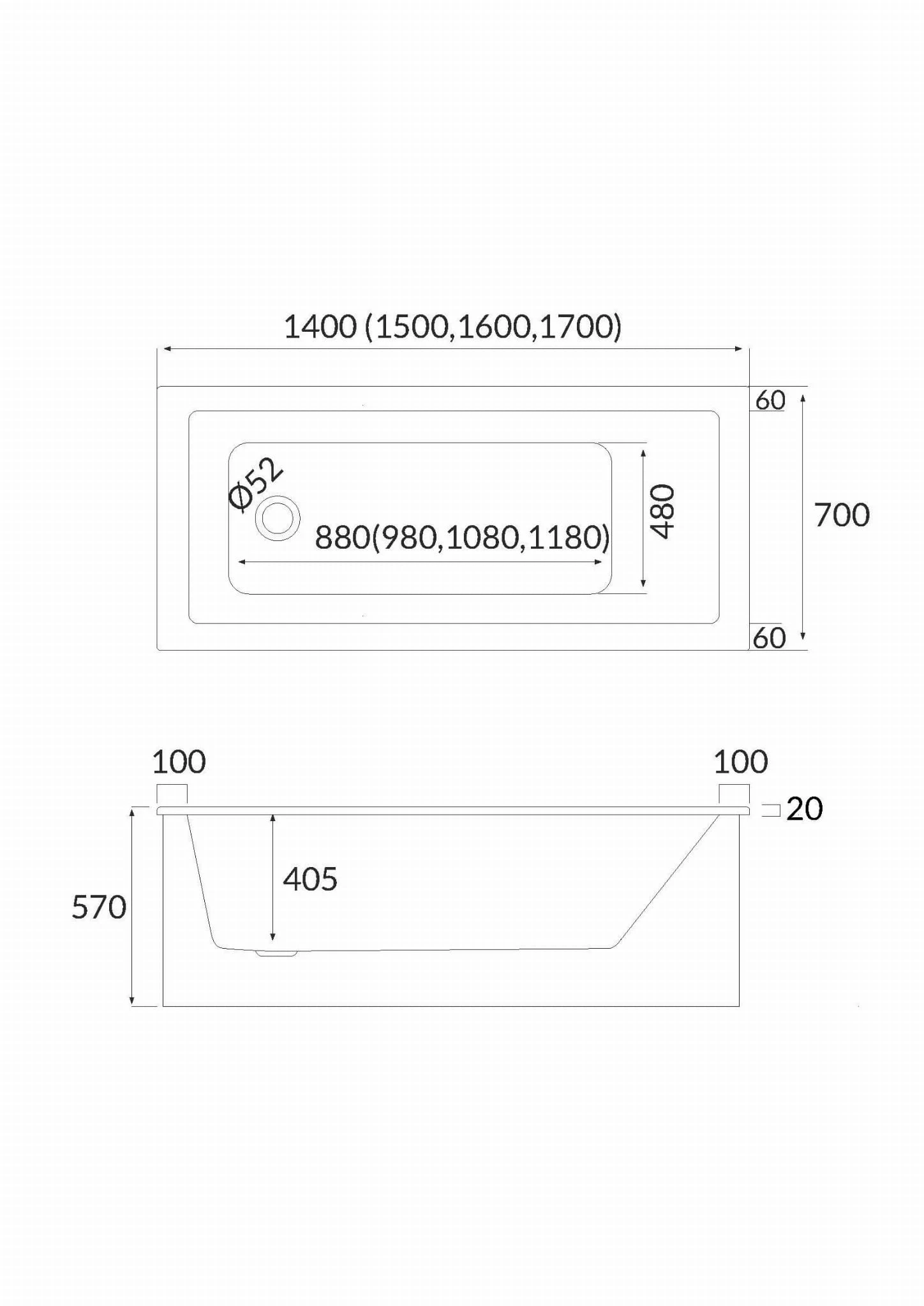 Wanna prostokątna z nośnikiem MAIO SET 140x70cm. Schedpol