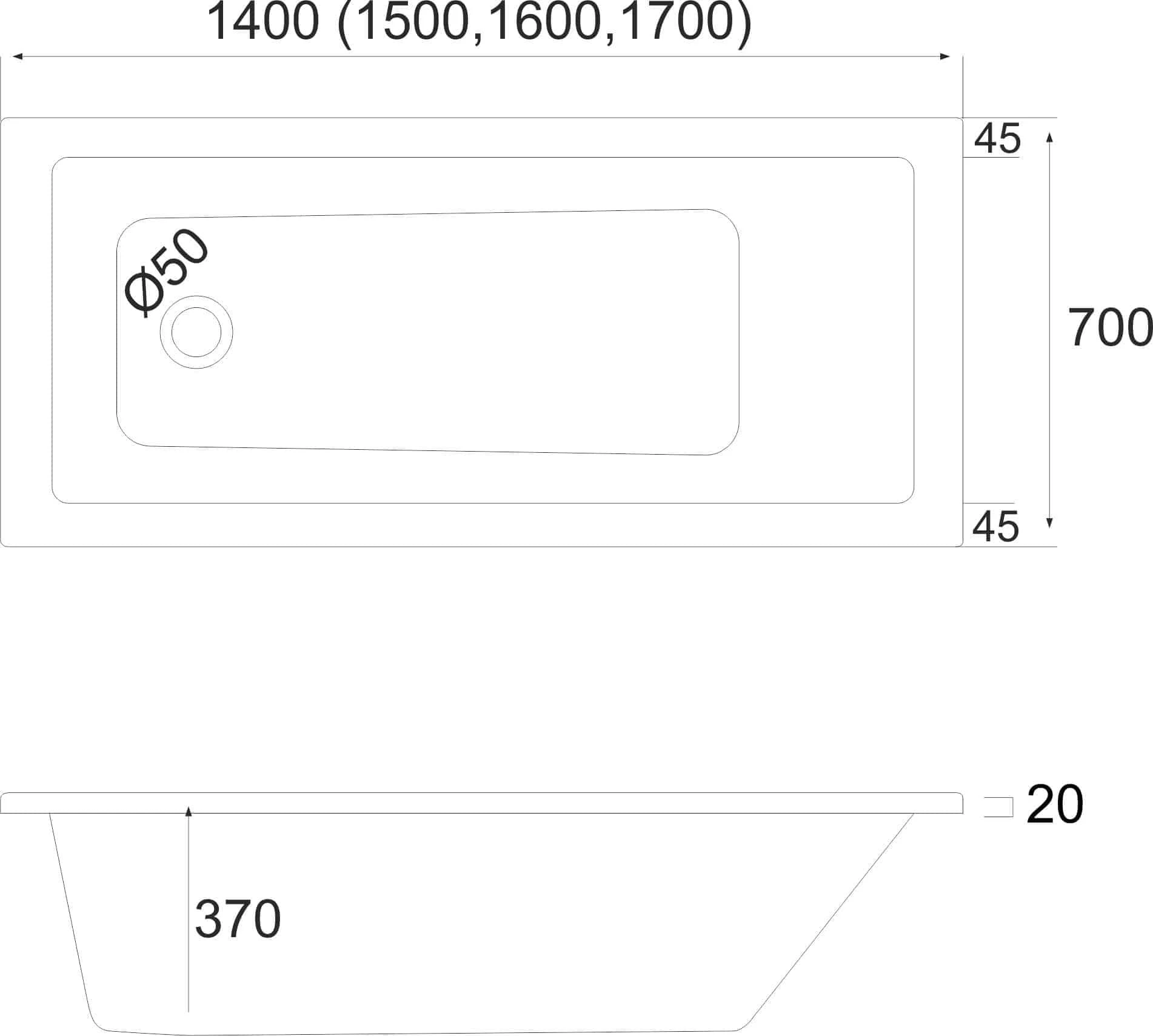 Wanna prostokątna BAFIA 150x70cm. Schedpol