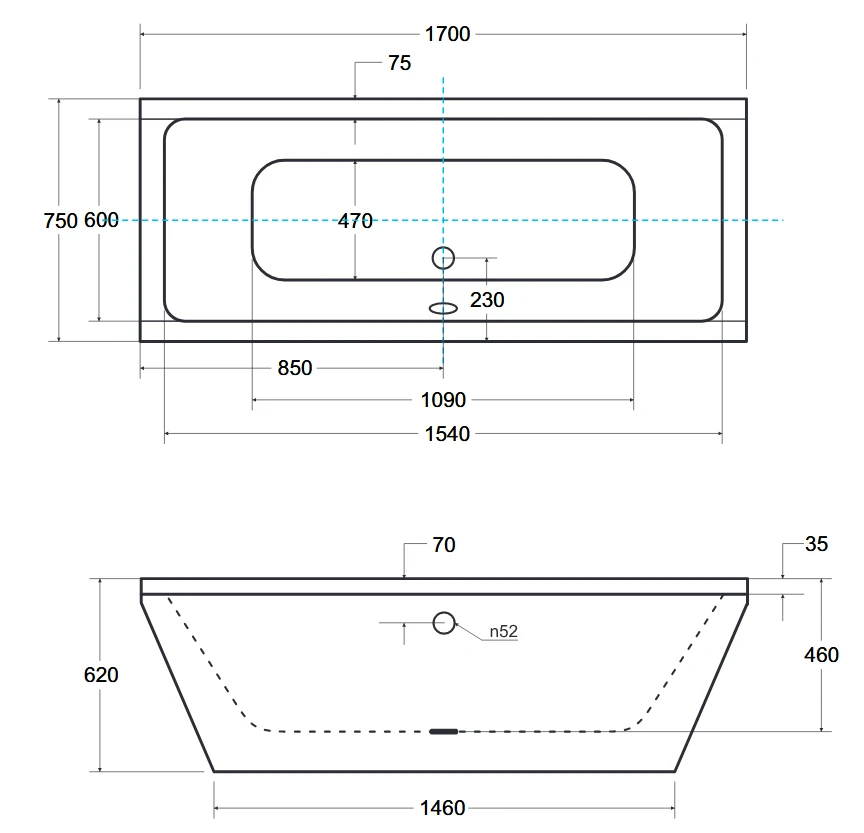 Opcjonalnie, odpływ Alcaplast klik-klak w cenie wanny