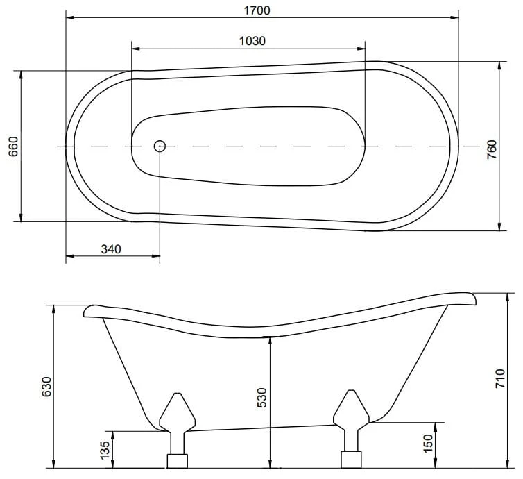 Wanna wolnostojąca Besco OTYLIA 170x77 cm łapy chrom