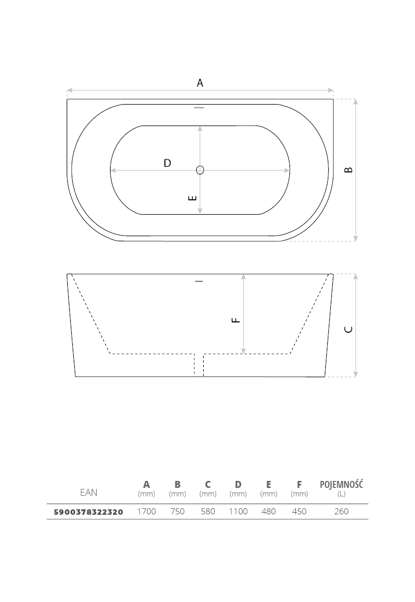 - Wymiary w mm (dł x szer x wys) 1700x750x580
