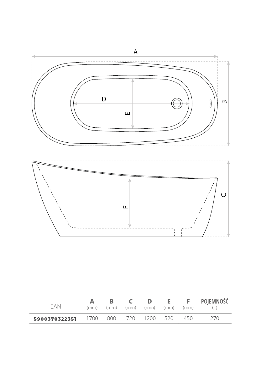 - Wymiary w mm (dł x szer x wys) 1700x800x720