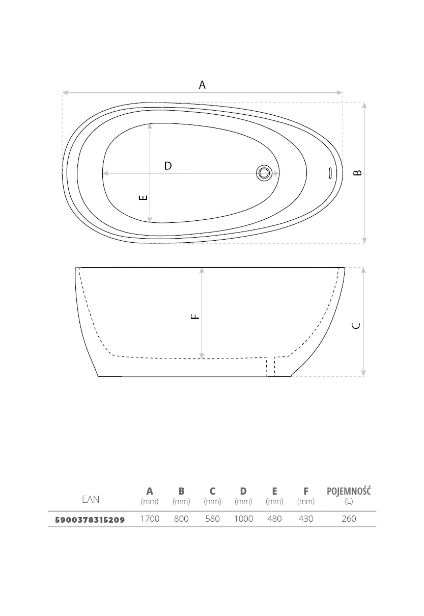 - Wymiary w mm (dł x szer x wys) 1700x800x580
