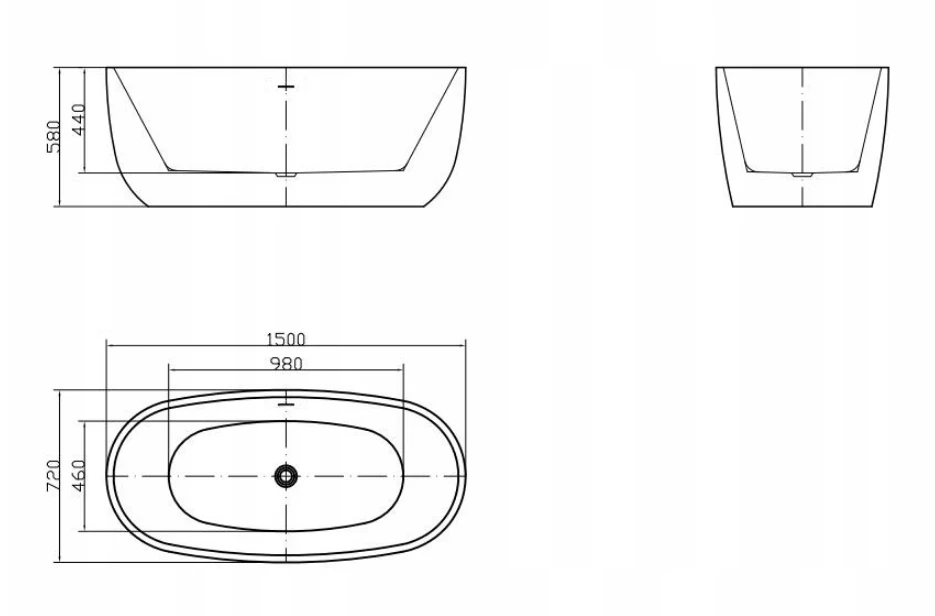 - Wanna wolnostojąca 150 cm z przelewem