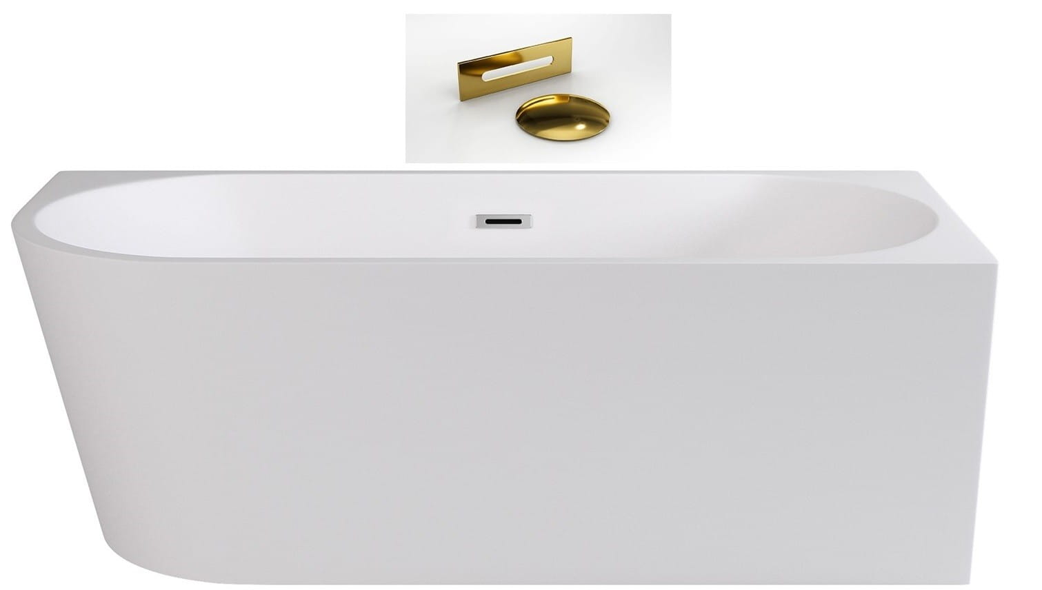 Wanna wolnostojąca przyścienna Zoya firmy Besco została wykonana z wysokiej jakości akrylu sanitarnego. W zestawie z wanną są syfon klik-klak z przelewem i złote maskownice.