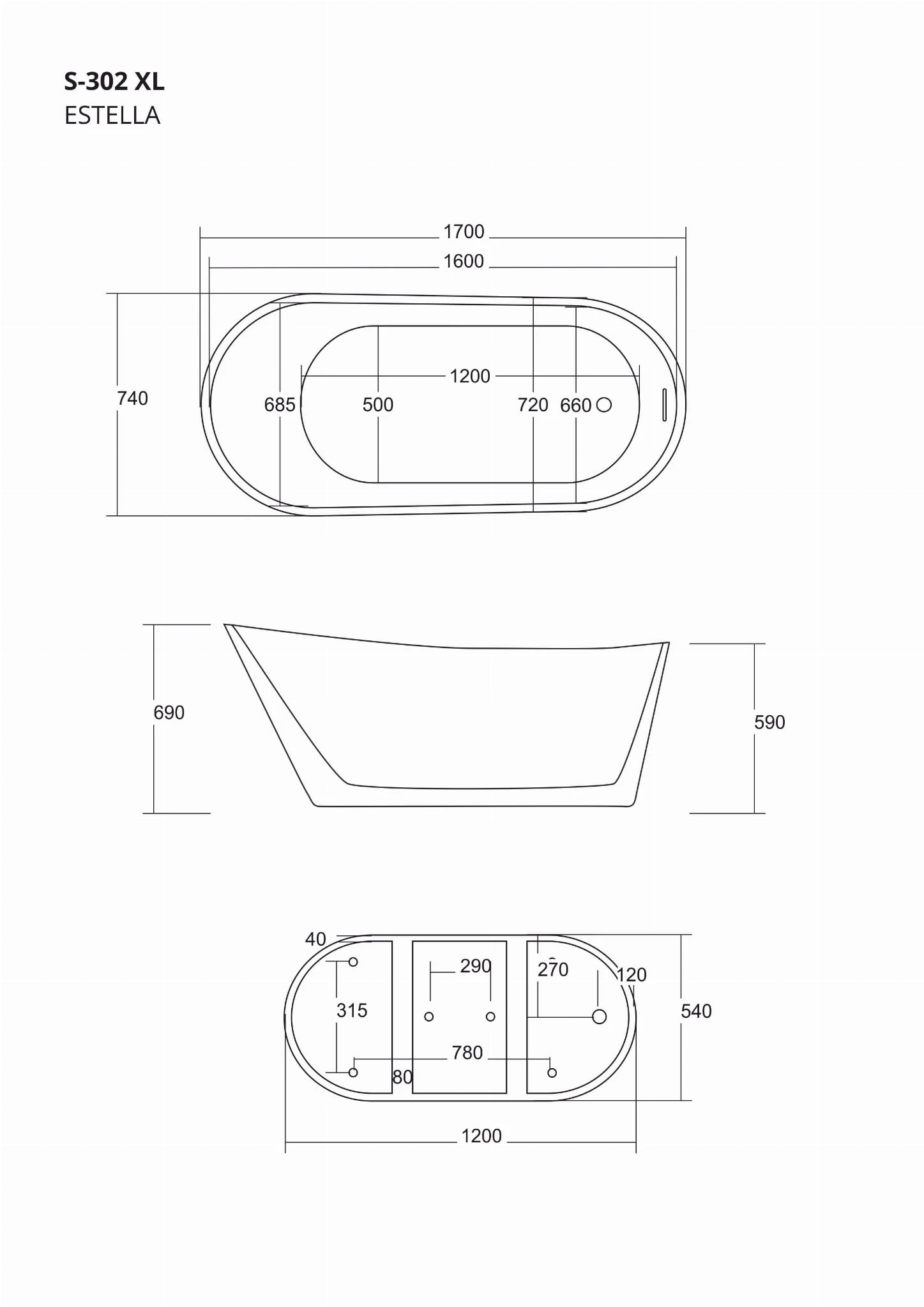 Wanna wolnostojąca corsan estella 170 cm z wykończeniem grafit / gun metal
