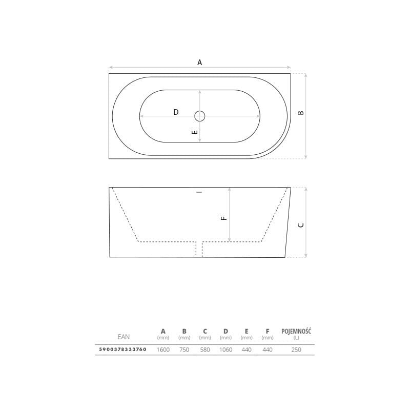 - Wymiary w mm (dł x szer x wys) 1600x750x580