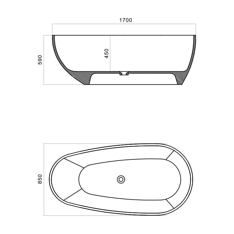 - Wymiary w mm (dł x szer x wys) 1700x850x590
