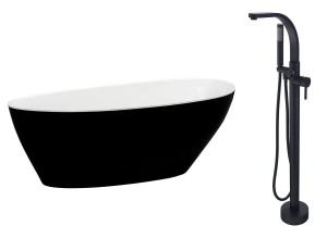 Wanna wolnostojąca Besco GOYA B&W 160x70 połysk + bateria wannowa wolnostojąca Decco I w kolorze czarny matt