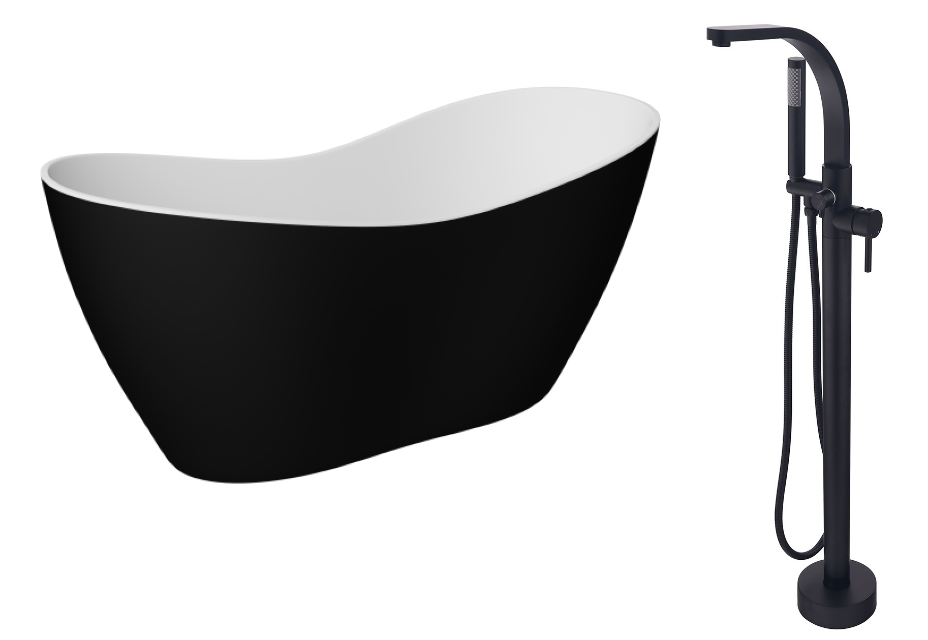 Wanna wolnostojąca Besco VIYA B&W 160x70 + bateria wolnostojąca Decco I czarny matt