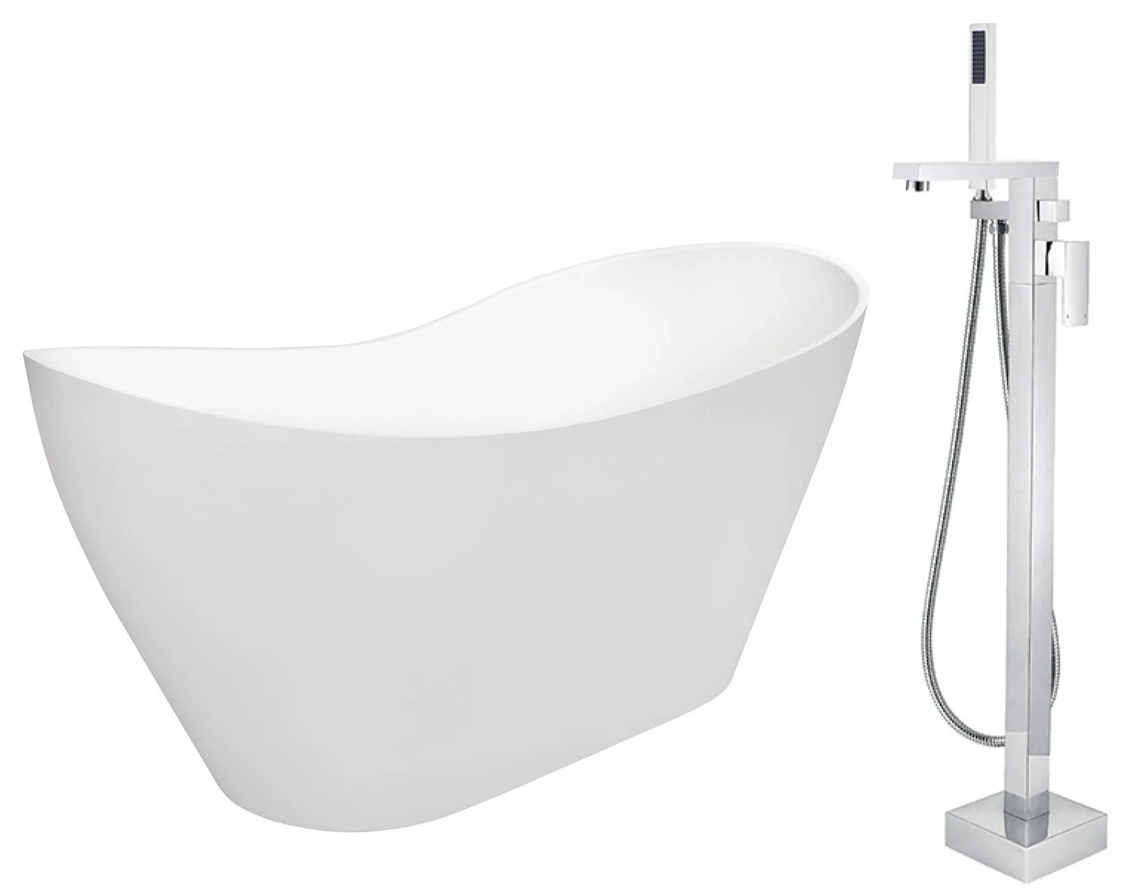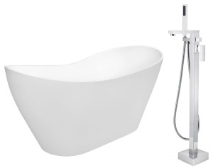 Wanna wolnostojąca Besco VIYA 160x70 cm biała + bateria wannowa wolnostojąca Varium w kolorze chrom.