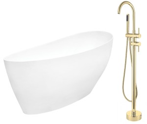Wanna wolnostojąca Besco Keya 165x70 biała + bateria wannowa wolnostojąca Illusion I złota