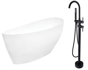 Wanna wolnostojąca Besco Keya 165x70 biała + bateria wannowa wolnostojąca Illusion I w kolorze czarny matt
