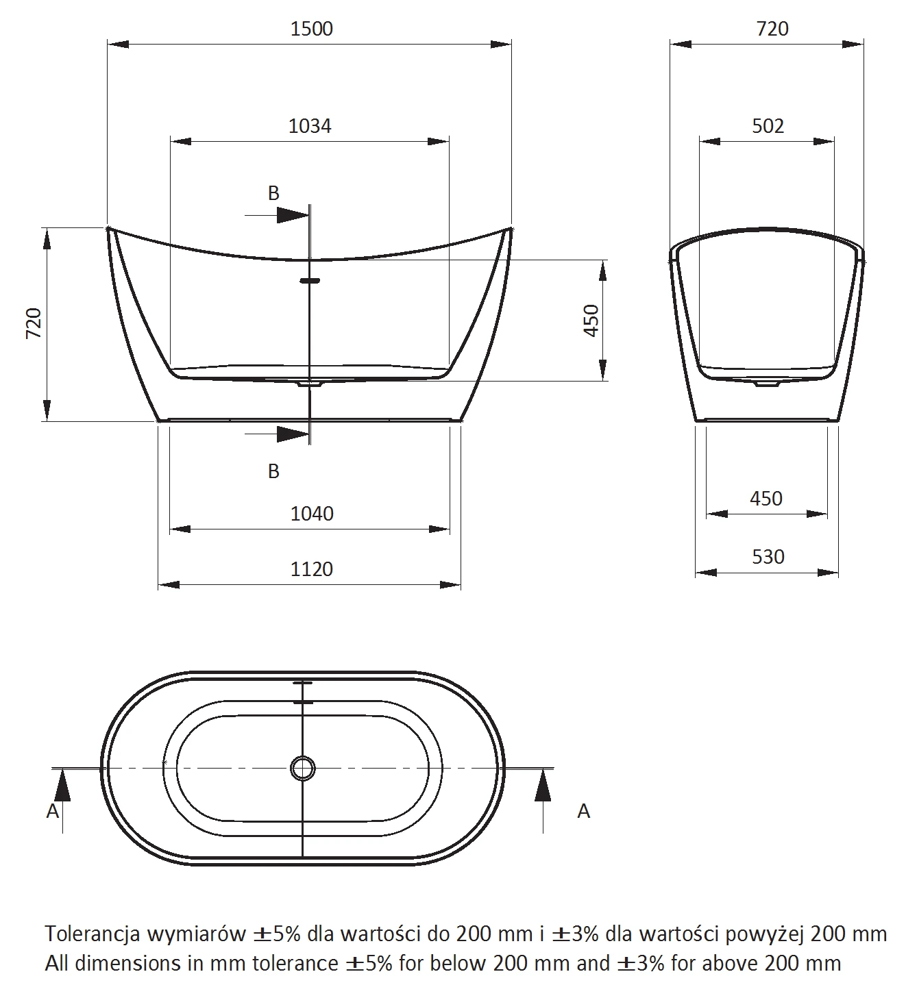 Wanna akrylowa wolnostojąca owalna 150x72 Arnika Deante