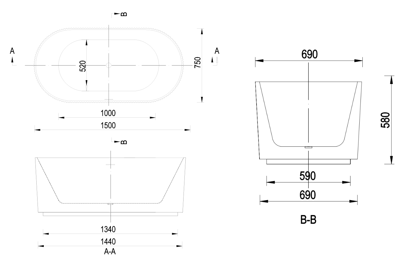 Wanna wolnostojąca Rio firmy Emporia o wymiarach 150x75x60 cm, z przelewem szczelinowym i białym korkiem.