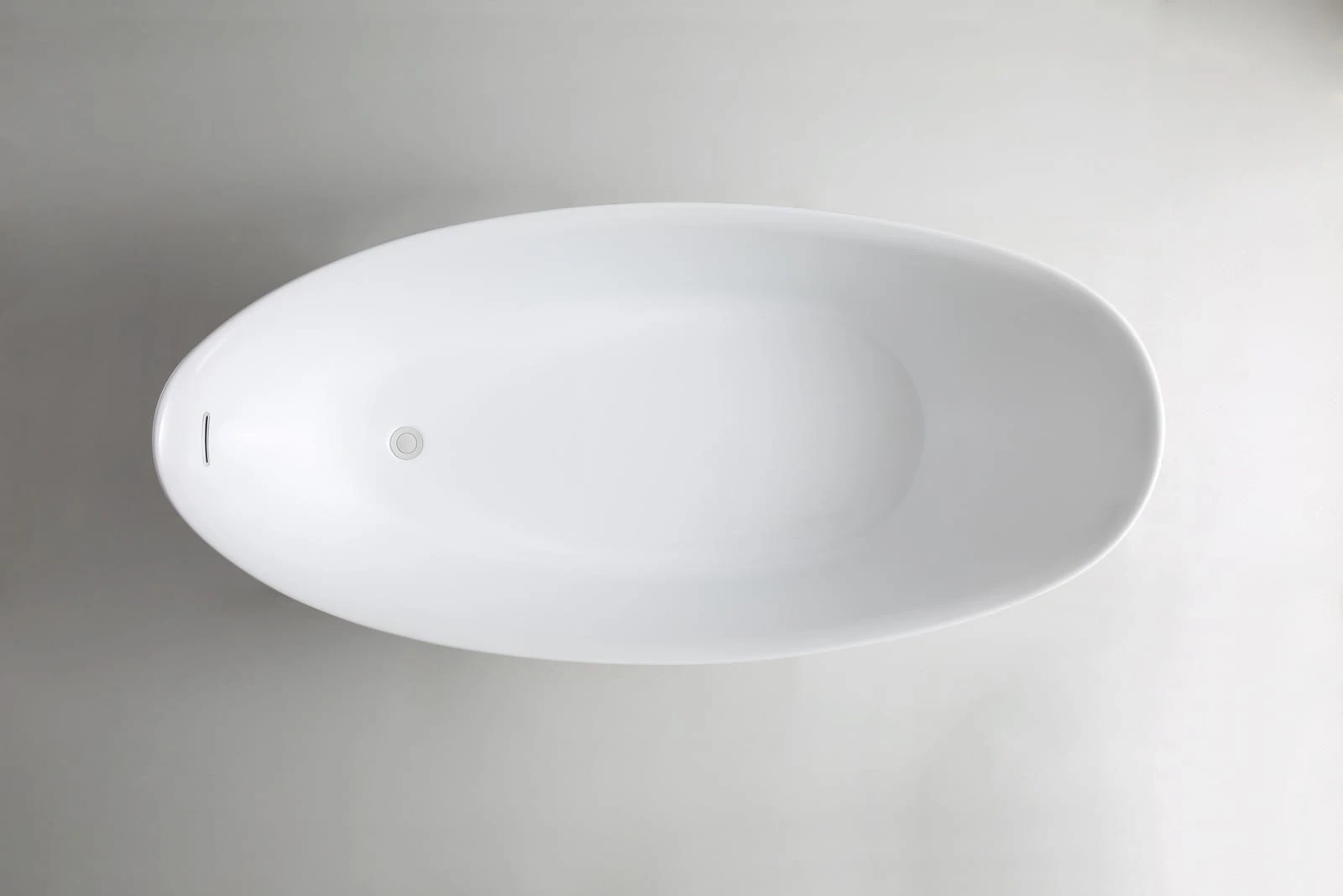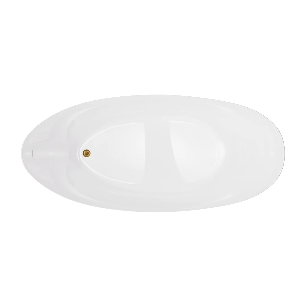 Na pierwszy rzut oka widać, że AVOLA nie jest klasyczną elipsą. Jej forma przypomina rzeźbę — asymetryczną, organiczną, delikatnie unoszącą się z jednej strony, jakby była uformowana przez samą wodę. To charakterystyczne wyprofilowanie wyróżnia ją na tle zwykłych wanien wolnostojących i wprowadza do łazienki wyjątkowy, lekko „architektoniczny” styl. Ta asymetria nie jest ozdobą dla oka. Jej zadaniem jest realnie poprawić komfort kąpieli: ciało układa się tu w bardziej naturalnej, odprężającej pozycji, linia jednego boku tworzy stabilne podparcie dla pleców i głowy, a cała bryła wygląda lżej i smuklej, dodając przestrzeni elegancji. To wanna, która nie dominuje wnętrza — tylko je podnosi, nadając mu charakteru. AVOLA ma doskonale dopasowane proporcje 178×82×67 cm. Wnętrze jest głębokie i miękko wyprofilowane, tak aby ciało otulała łagodna linia, bez ostrych przejść i wymuszonych pozycji. Smukła forma na zewnątrz sprawia natomiast, że wanna prezentuje się lekko nawet w mniejszych łazienkach. Jej pojemność, około 265 litrów, pozwala zanurzyć się w pełni — tak, jak lubisz. To ten moment, kiedy zamykasz oczy i naprawdę możesz zapomnieć, że jesteś u siebie w domu, a nie w hotelowym spa. Złoty korek dodaje AVOLI luksusowego, ciepłego charakteru. To akcent, który pięknie podkreśla miękką linię wanny i współgra z eleganckimi aranżacjami opartymi na beżach, marmurze i naturalnym świetle. Wnosi do wnętrza odrobinę glamour i sprawia, że całość wygląda jak prywatny salon kąpielowy premium.