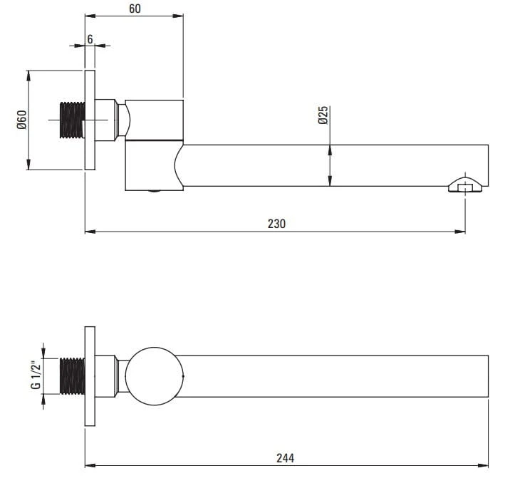 - Zasięg wylewki natryskowej/ wannowej [mm] 230