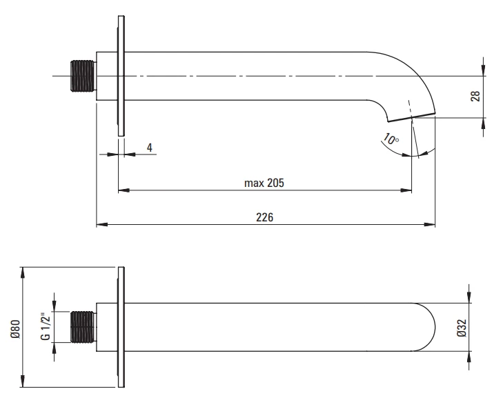 - WYLEWKA - Zasięg wylewki natryskowej/ wannowej [mm] 205