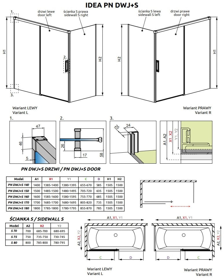 - Montaż ścianki bocznej możliwy jest tylko od strony listwy magnetycznej.