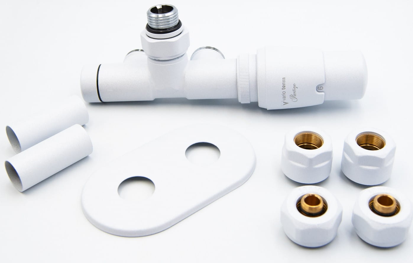 Zestaw zaworów termostatyczny Unico Radeco lewy / prawy w kolorze białym błyszczącym RAL 9016.