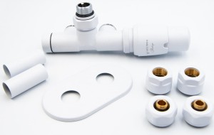 Zestaw „Unico” do grzejników z pionowymi kolektorami pozwalającymi na zastosowanie grzałki elektrycznej. Rozstaw podłączenia do instalacji 50 mm. GZ ½” / GZ ¾” x GZ ¾”.