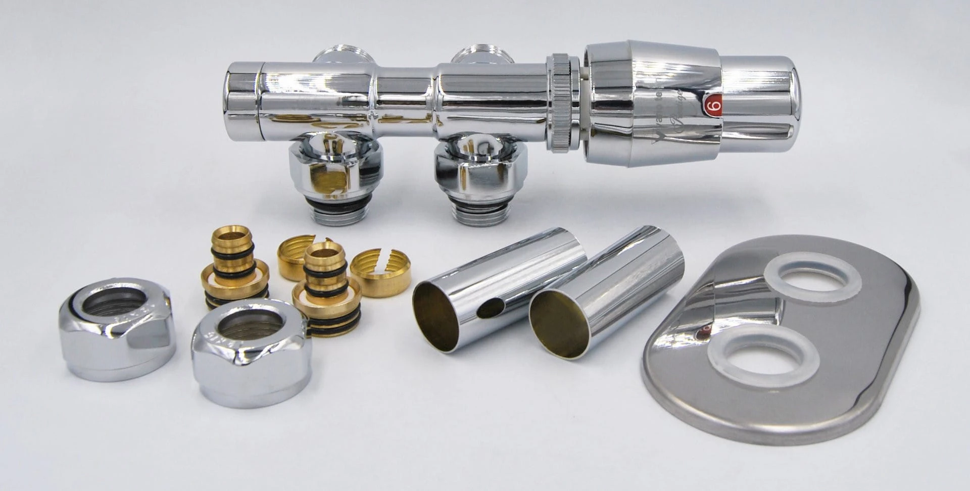 Zestaw zaworów termostatyczny Twins Radeco lewy / prawy w kolorze chrom