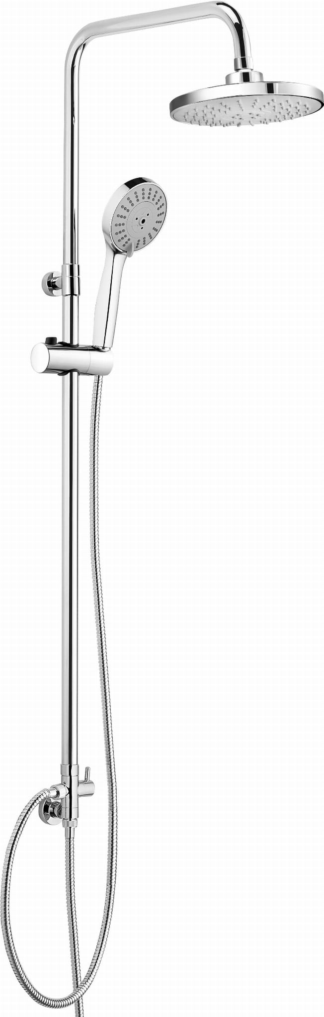 Deszczownica z kompleksowej - bo oferującej zarówno baterie łazienkowe, jak i kuchenne - serii Corio, w klasycznym wykończeniu w błyszczącym chromie, to produkt zaprojektowany nie tylko z myślą o doskonałym, uniwersalnym designie, ale również o komforcie i wygodzie - także użytkowników małych łazienek. Prezentowany tu zestaw składa się z 3-funkcyjnej słuchawki prysznicowej, drążka i 2-funkcyjnej głowicy natryskowej, co stanowi gwarancję przyjemnej, relaksującej kąpieli pod prysznicem. Prezentowana deszczownica sprawdzi się doskonale zarówno w łazienkach urządzonych w nowoczesnym, jak i w klasycznym stylu, a wszystko to dzięki eleganckiemu wykończeniu i tradycyjnym, prostym kształtom kolekcji. Deszczownica charakteryzuje się także możliwością regulacji wysokości lub kąta nachylenia elementów oraz systemem anti-calc ułatwiającym utrzymanie jej w czystości. Można ją zamontować do baterii wannowej lub prysznicowej.