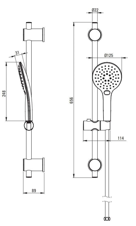 Drążek wykonany jest ze stali nierdzewnej i posiada regulowany kąt ustawienia słuchawki natryskowej.