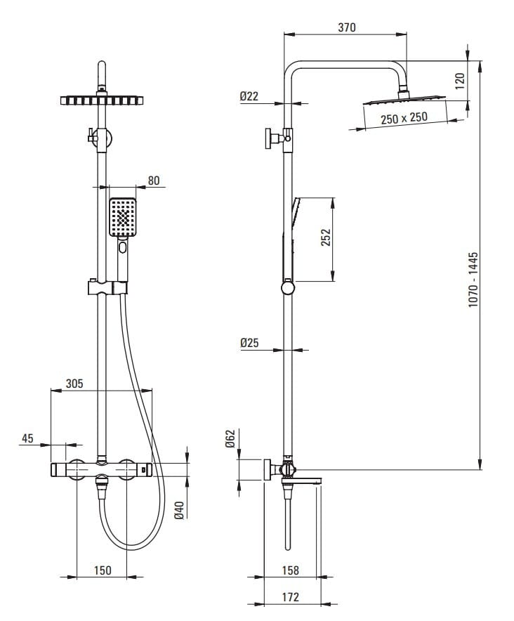 - Regulacja wysokości drążka od [mm] 1070