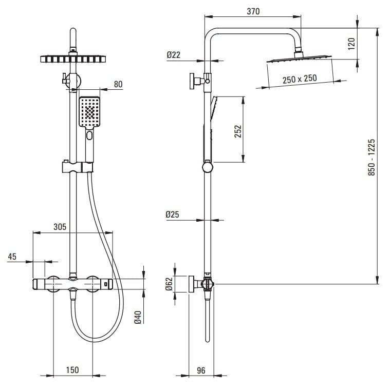 - Regulowana wysokość górnej deszczowni Tak
